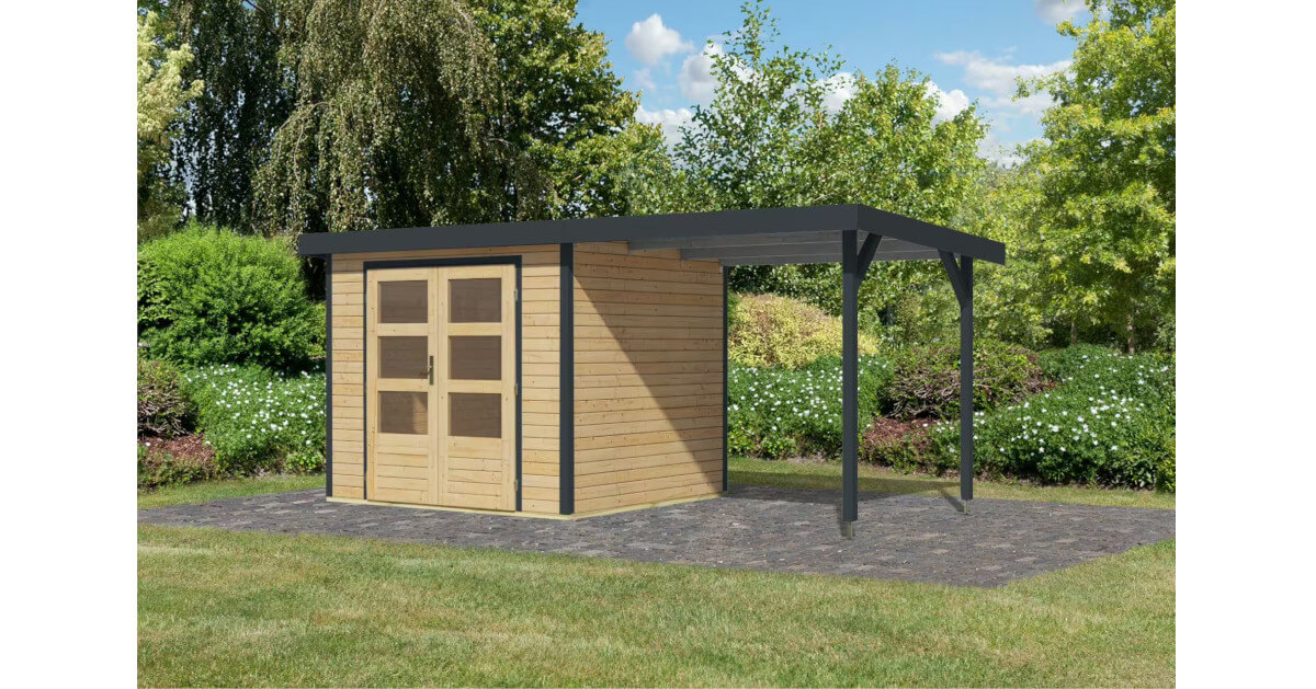 Mit dem optionalen Anbaudach erhalten Sie zusätzlichen Stauraum und erweiterte Nutzungsmöglichkeiten als Gartenlounge. Machen Sie es zu Ihrem persönlichen Rückzugsort.