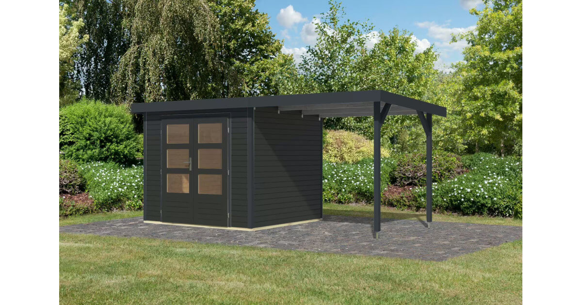Mit dem optionalen Anbaudach erhalten Sie zusätzlichen Stauraum und erweiterte Nutzungsmöglichkeiten als Gartenlounge. Machen Sie es zu Ihrem persönlichen Rückzugsort.