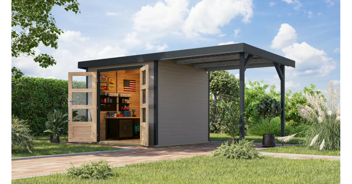 Erleben Sie die perfekte Vereinigung von Holz und Metall mit dem Hybrid-Gartenhaus von Karibu. Genießen Sie hochwertige Materialien, geringe Wartung, Witterungsbeständigkeit, Individualisierbarkeit, einfache Montage, Langlebigkeit und ein modernes Design.