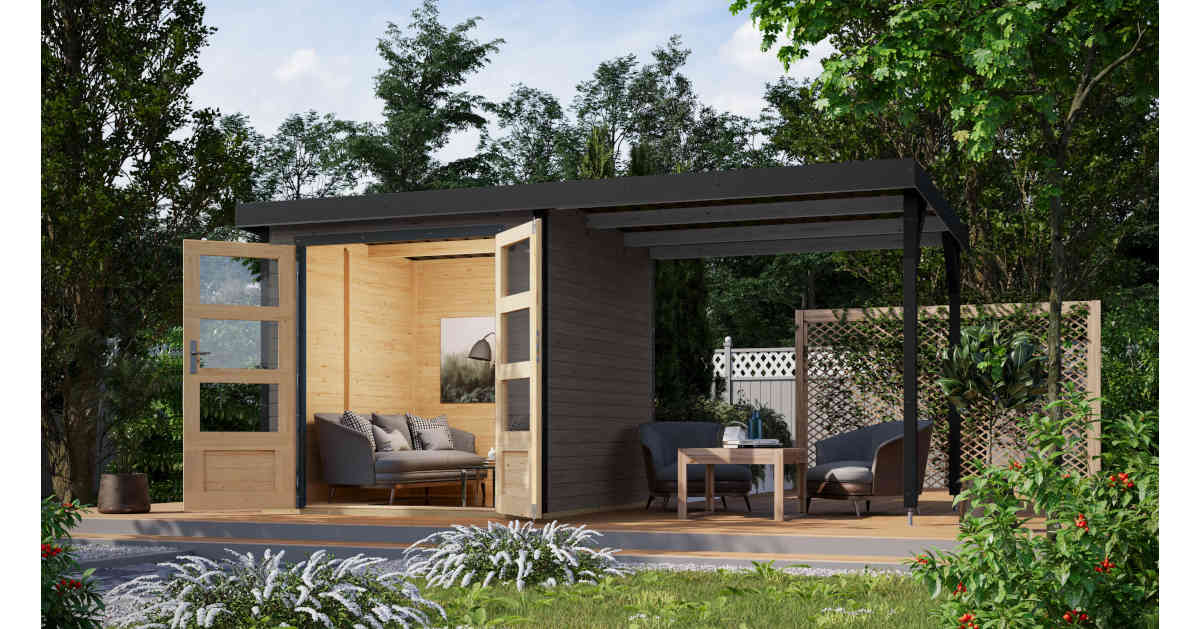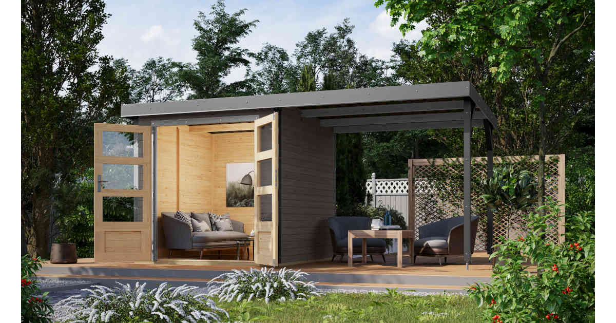 Mit dem optionalen Anbaudach erhalten Sie zusätzlichen Stauraum und erweiterte Nutzungsmöglichkeiten als Gartenlounge. Machen Sie es zu Ihrem persönlichen Rückzugsort.