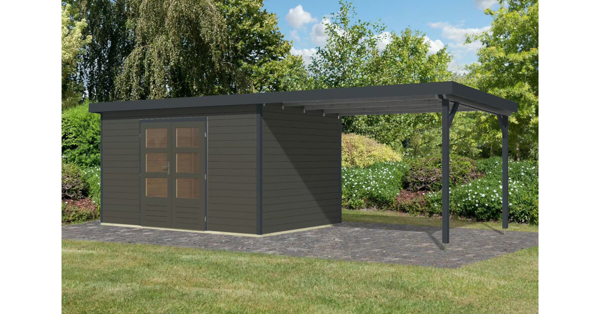Mit dem optionalen Anbaudach erhalten Sie zusätzlichen Stauraum und erweiterte Nutzungsmöglichkeiten als Gartenlounge. Machen Sie es zu Ihrem persönlichen Rückzugsort.