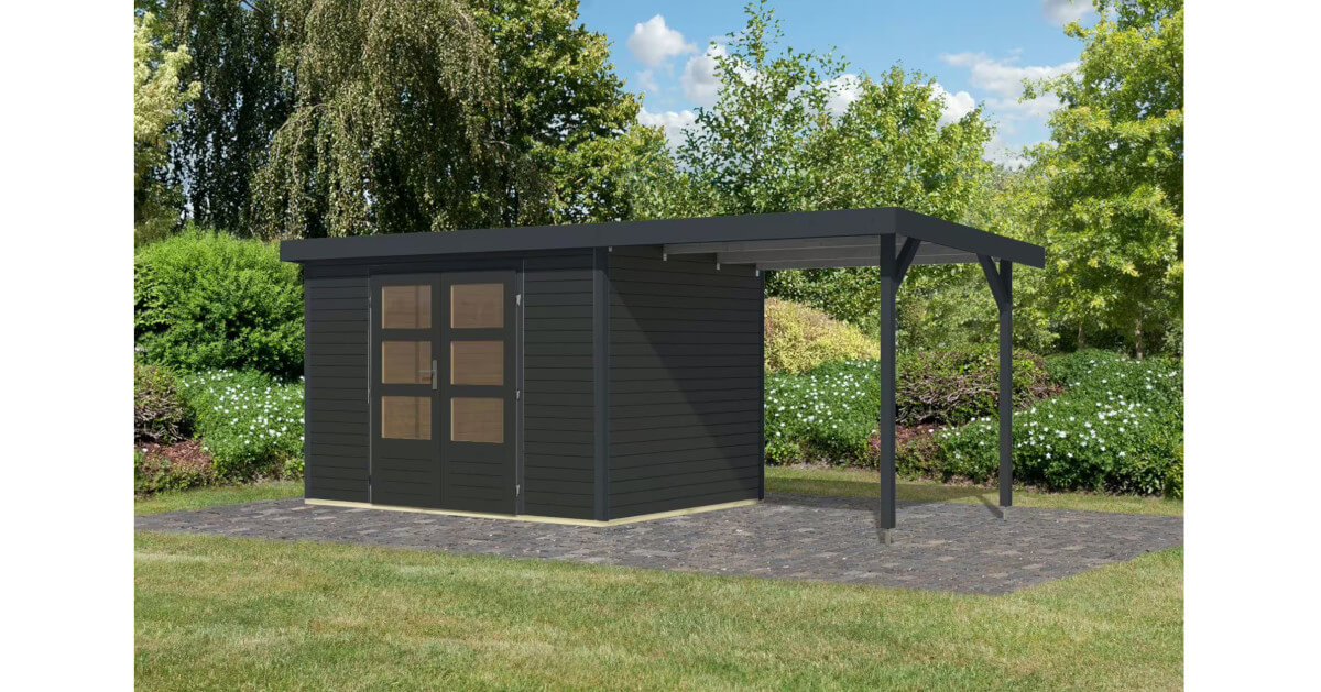 Mit dem optionalen Anbaudach erhalten Sie zusätzlichen Stauraum und erweiterte Nutzungsmöglichkeiten als Gartenlounge. Machen Sie es zu Ihrem persönlichen Rückzugsort.