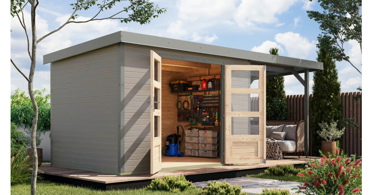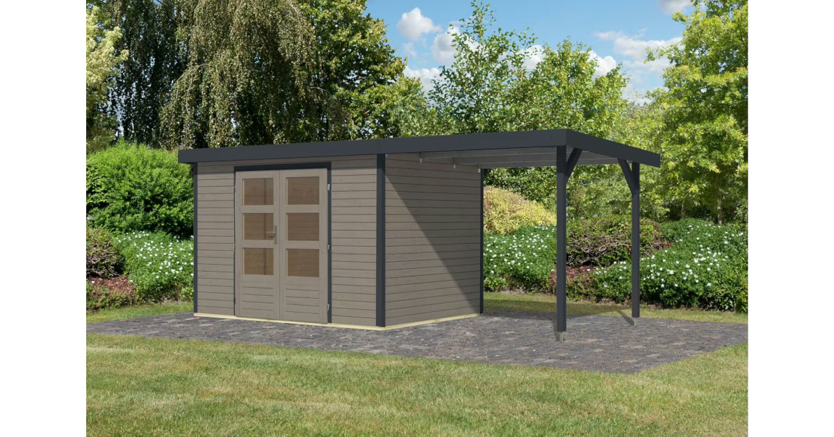 Mit dem optionalen Anbaudach erhalten Sie zusätzlichen Stauraum und erweiterte Nutzungsmöglichkeiten als Gartenlounge. Machen Sie es zu Ihrem persönlichen Rückzugsort.