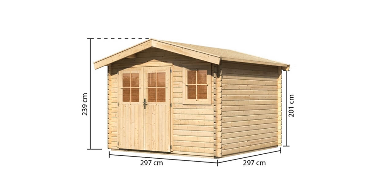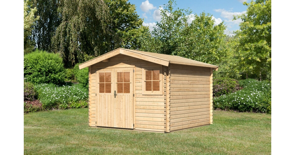 Das Blockbohlenhaus Felsenau 3 hat eine Wandstärke von 38mm und hat dank der patentierten 6-Plus-Eckverbindung eine sehr stabile Konstruktion. In den großzügigen Innenraum mit Maßen von (BxT) 274x274cm gelangen Sie durch eine Doppelflügeltür mit einem Lichtausschnitt pro Türflügel. Die Lichtausschnitte sorgen für eine natürliche Lichtquelle im Innenraum. Durch ein im Lieferumfang enthaltenes Dreh-/Kippfenster gelangt zusätzliches Tageslicht hinein. Der helle Innenraum lädt zum Entspannen und Wohlfühlen ein. Durch gemütliche Sitzmöglichkeiten kann das Gartenhaus besonders heimisch werden. Das Haus eignet sich aber nicht nur als Rückzugsort im eigenen Garten. Auch Gartengeräte oder die Hobbywerkstatt können hier Platz finden. Durch das tauschen der Tür- und Festerposition in der Front können Sie das Gartenhaus Felsenau noch individueller nach den eigenen Bedürfnissen gestalten. Nach außen wird das Haus durch ein Satteldach abgerundet. Um die Dachkonstruktion effektiv vor der Witterung zu schützen kann die Dachfläche von 10,6m² mit unseren Dachschindeln ausgekleidet werden. Diese bieten dem Haus nicht nur den nötigen Schutz, sondern verschönern zusätzlich die Optik und runden das Gesamtbild ab. Von unten schützen kesseldruckimprägnierte Bodenbalken vor aufsteigender Nässe. Erweitern Sie Ihre Aufenthaltsmöglichkeiten im eigenen Garten mit dem Gartenhaus Felsenau 3.
