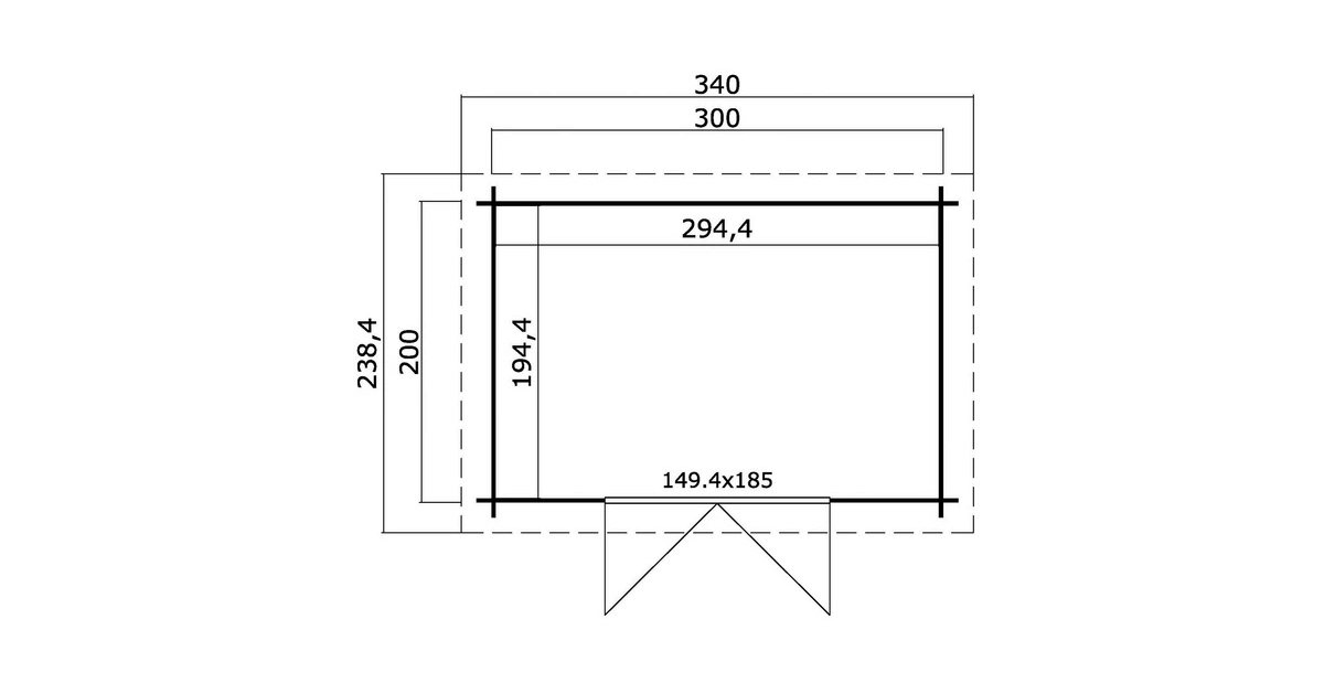 ca. B 300 x T 200 cm Sockelmaß