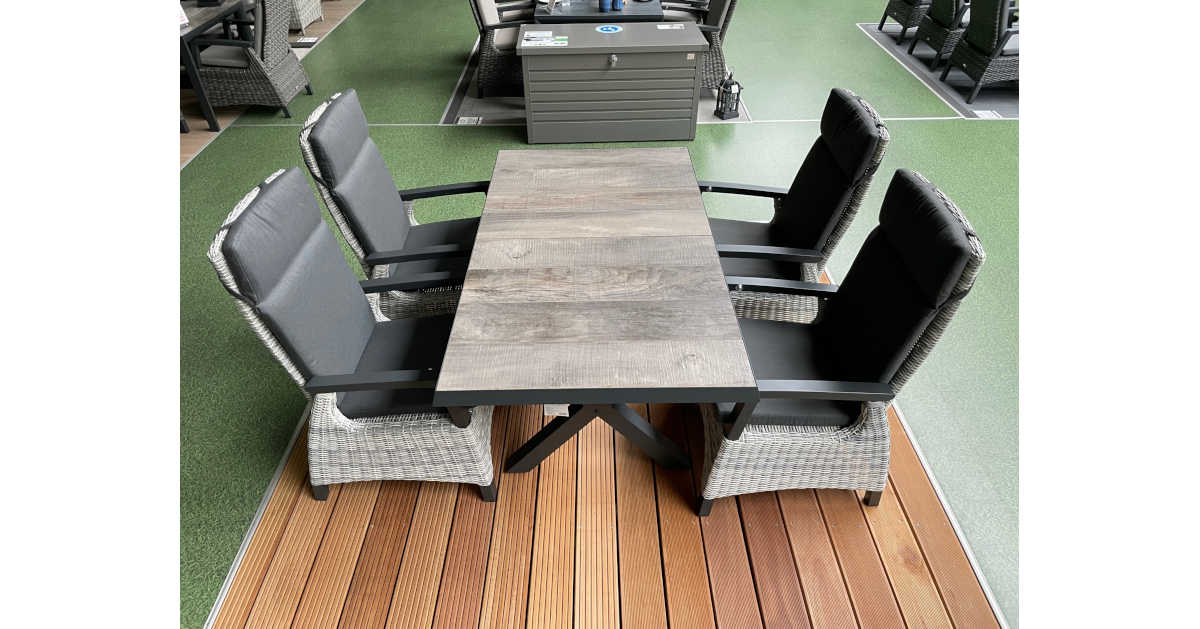 1x Sincro Automatik-Ausziehtisch 160/200 x 90 cm mit 4x Corido Gartensessel