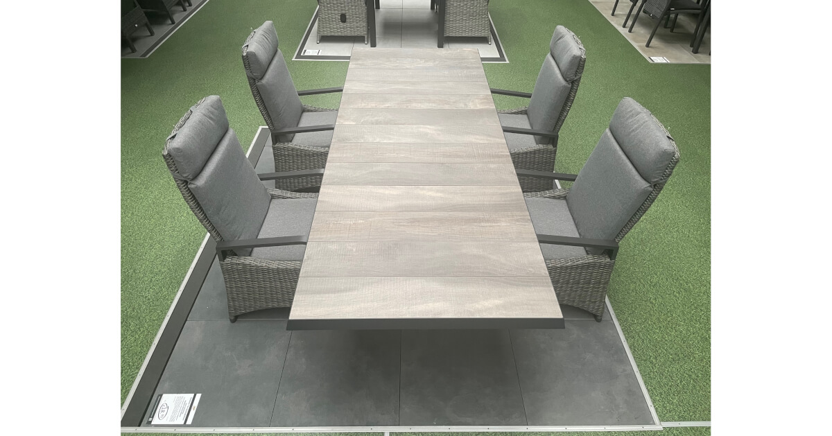 Komfort und Flexibilität werden bei diesem Dining-Set großgeschrieben - verbringen Sie einzigartige Momente zusammen mit Freunden und Familie. Die moderne Tischgruppe besticht durch höchsten Sitzgenuss. Hier trifft Qualität auf schlichte Eleganz und viel Funktionalität: Die Rückenlehne der bequemen Dining Sessel lässt sich stufenlos verstellen und der Keramiktisch ist nicht nur optisch ein Highlight, sondern ist extrem unempfindlich. Holen Sie sich mit diesem Dining-Set eine Extraportion Komfort in Ihren Garten.