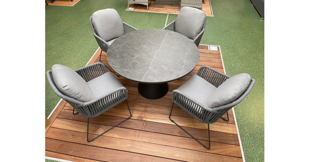 Das Edelstahl-Untergestell und die Rope-Bespannung sorgen zusammen für einen modernen Look, der sowohl zu klassischen als auch zu modernen Gartenstilen passt.
