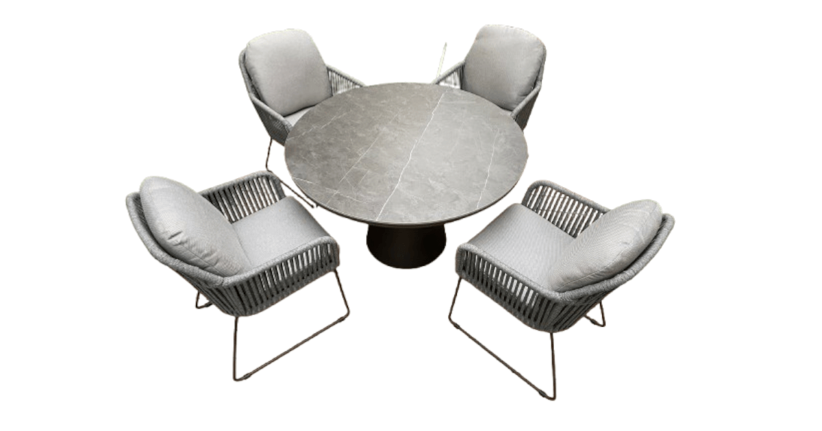 Der Rundtisch Daxx bietet mit seinem Durchmesser von 120 cm ausreichend Platz für bis zu 4-6 Personen, ideal für Familienessen, Kaffeerunden oder gesellige Abende mit Freunden. Das einzigartige Design des Tisches, die edle Sintered-Stone-Oberfläche und das kegelförmige Untergestell machen ihn zu einem echten Highlight in Ihrem Outdoor-Bereich. Der Tisch passt perfekt zu modernen Gartenmöbeln und fügt sich harmonisch in jeden Stil ein.