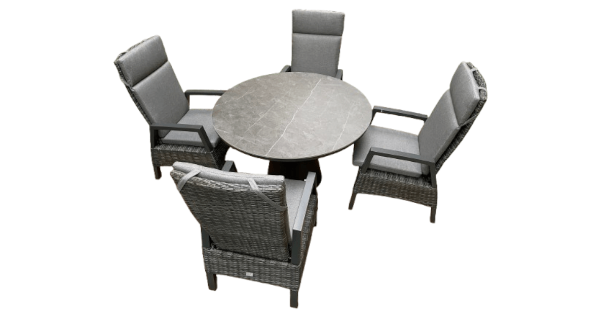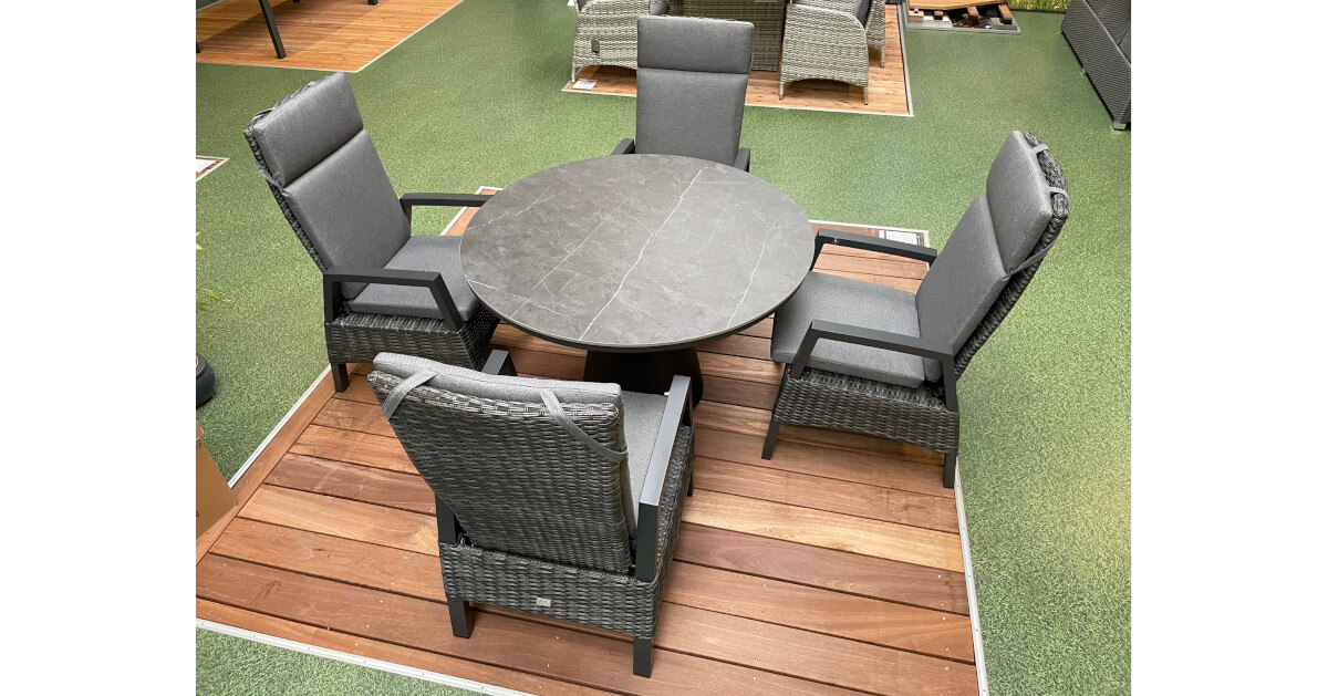 Der Rundtisch Daxx bietet mit seinem Durchmesser von 120 cm ausreichend Platz für bis zu 4-6 Personen, ideal für Familienessen, Kaffeerunden oder gesellige Abende mit Freunden. Das einzigartige Design des Tisches, die edle Sintered-Stone-Oberfläche und das kegelförmige Untergestell machen ihn zu einem echten Highlight in Ihrem Outdoor-Bereich. Der Tisch passt perfekt zu modernen Gartenmöbeln und fügt sich harmonisch in jeden Stil ein.