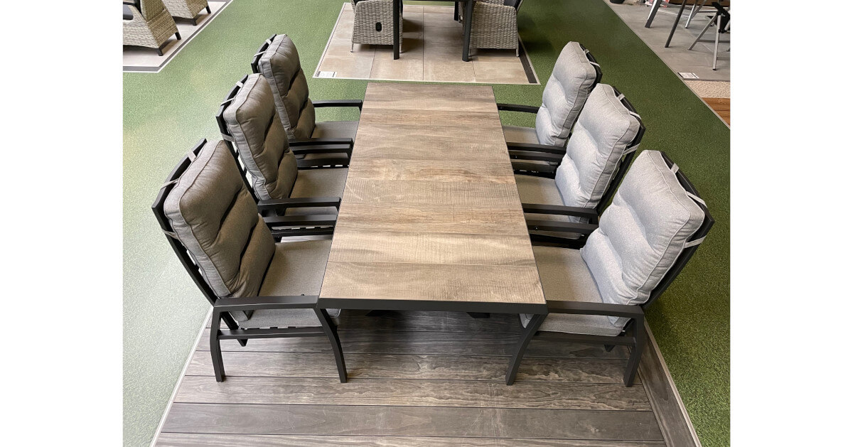 Gartenmöbelset mit Sincro Ausziehtisch 160/200x90 cm und 6 Bondino Verstellsesseln