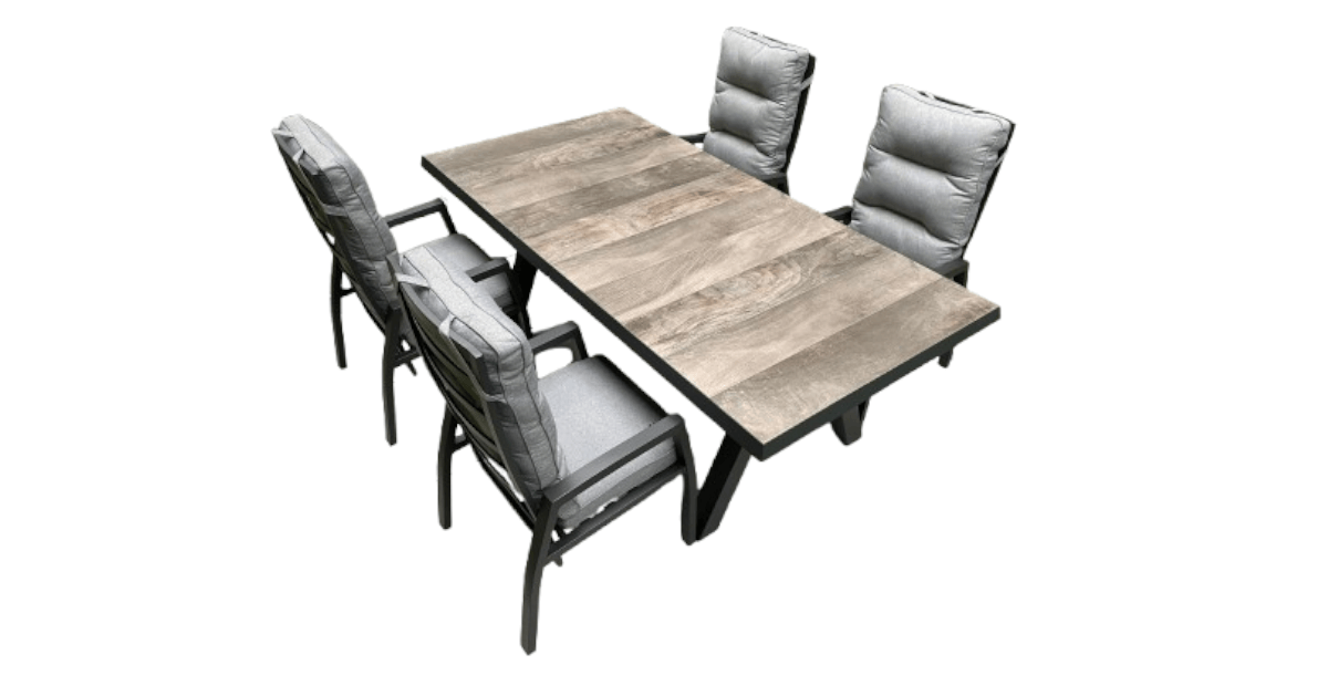 Die eckig gerahmten Gartenstühle bieten, dank stufenlos verstellbaren Rückenlehnen und kombinierten Sitz- und Rückenpolstern, einen jederzeit optimalen Sitzkomfort. Ein absolutes Highlight ist die Verstellung der Lehne per Knopfdruck. Die Hochlehner sind aus matt anthrazit/schwarzem Aluminium gefertigt und ergänzen sich perfekt zum Esstisch. Dank der mitgeliferten Sitzpolster bieten Ihnen die Gartenstühle jederseit ein optimales Sitzkomfort.