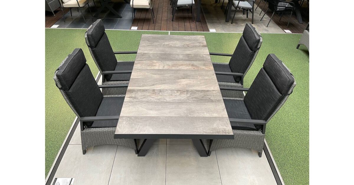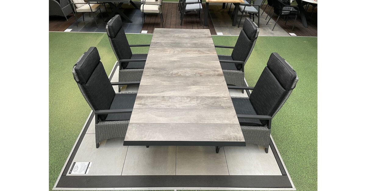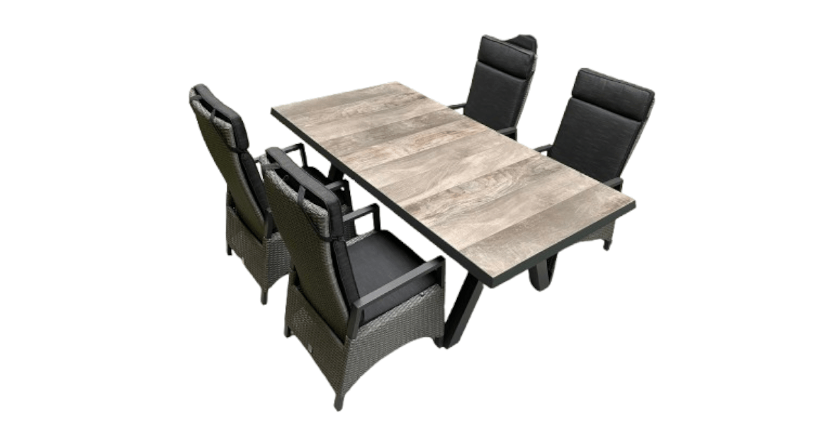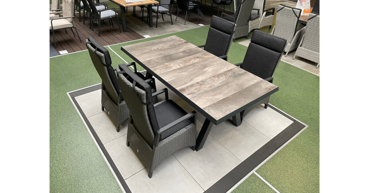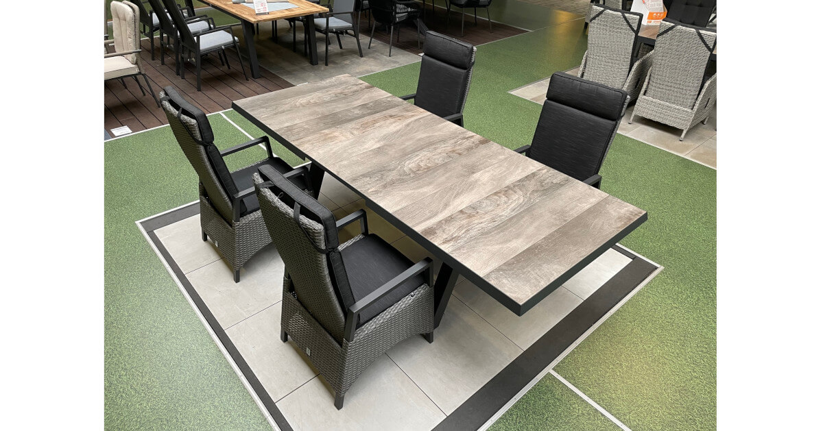 Gartenmöbelset mit Tirana ähnlich Sincro Ausziehtisch und 4 Keramo Verstellsesseln