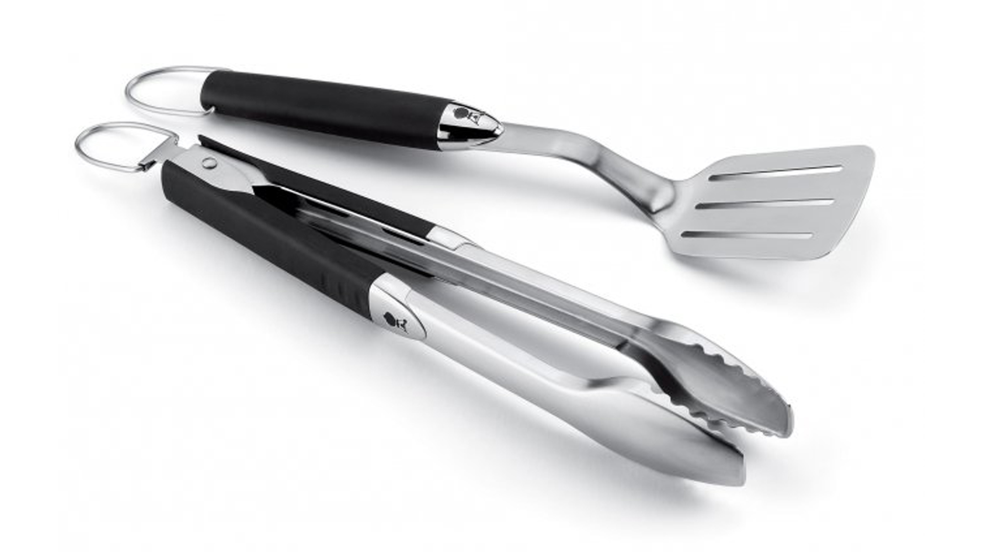 Kleines, praktisches Besteck-Set aus Edelstahl mit Kunststoffgriffen, zum optimalen Wenden des Grillguts.