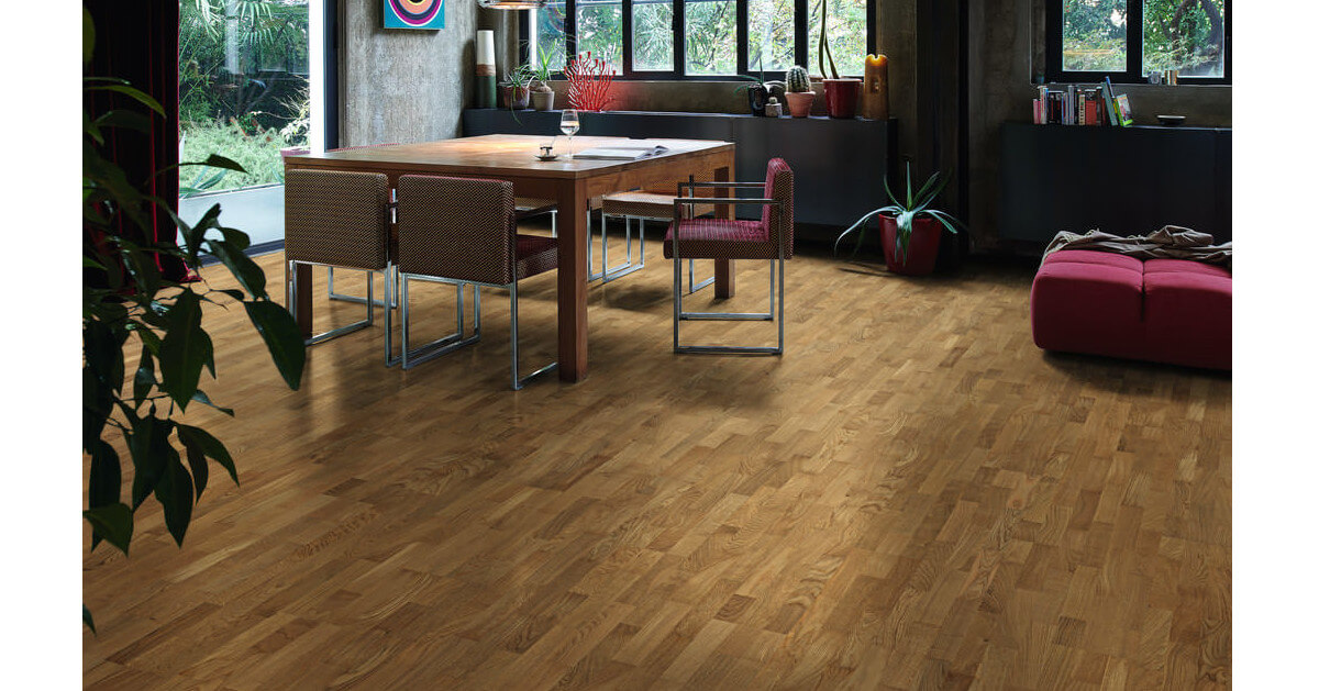 Dieser Parkettboden von HARO besitzt eine Edelholzschicht aus sorgfältig ausgewählten Hölzern. Der Boden ist dreischichtig aufgebaut. Die Vollholz-Trägerschicht kommt der Stabilität zugute. Außerdem sind die einzelnen Parkettdielen mit dem HARO Top-Connect Verbindungssystem ausgestattet. Sie lassen sich unkompliziert auf einer Trittschalldämmung verlegen.