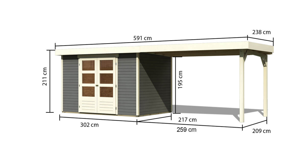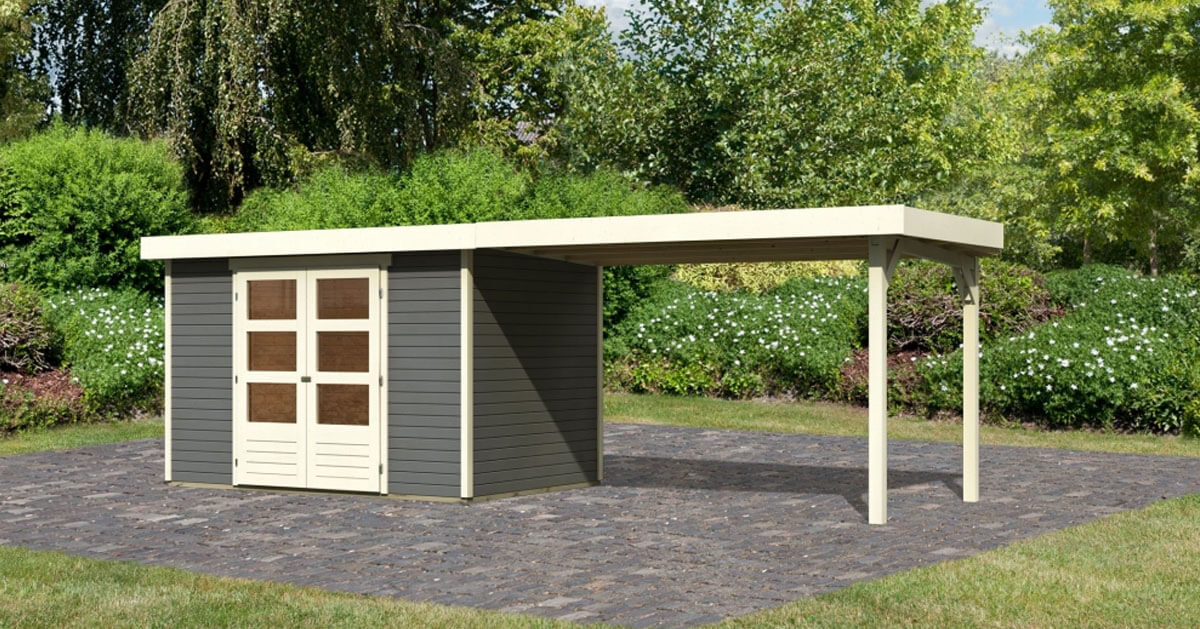 Karibu 19mm Gartenhaus Askola 4 mit 2,80m Anbau Terragrau