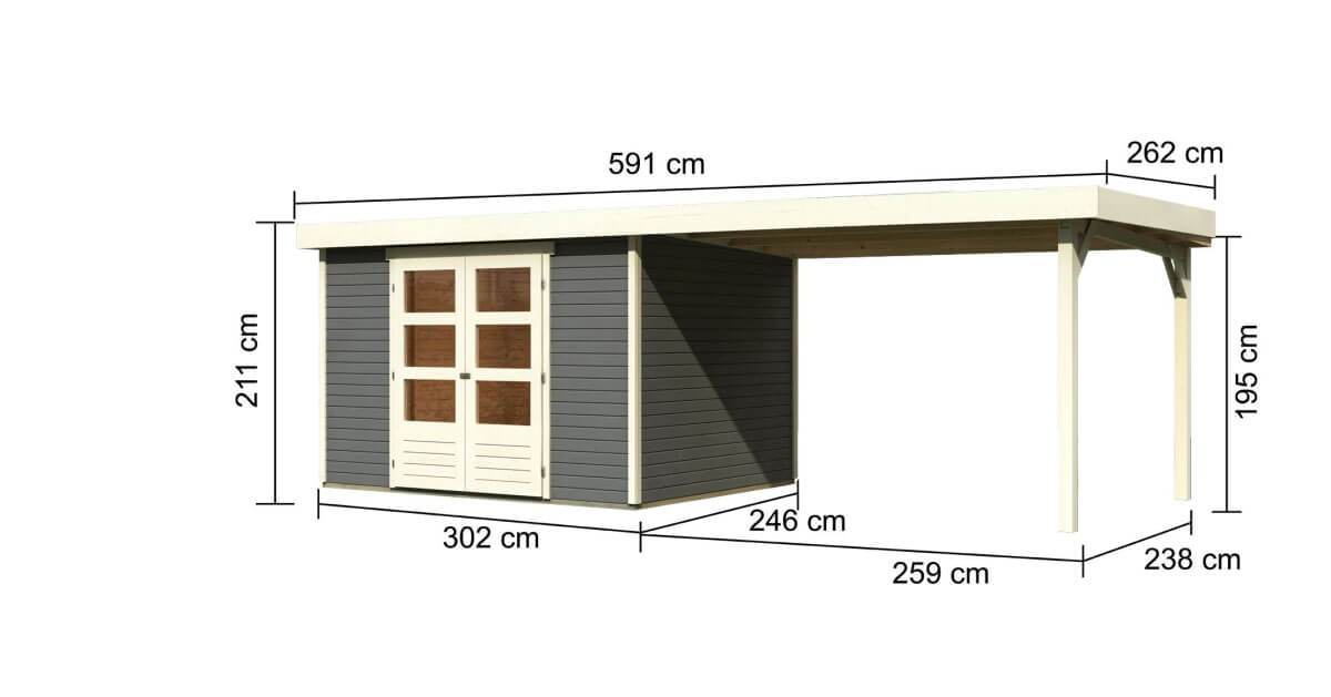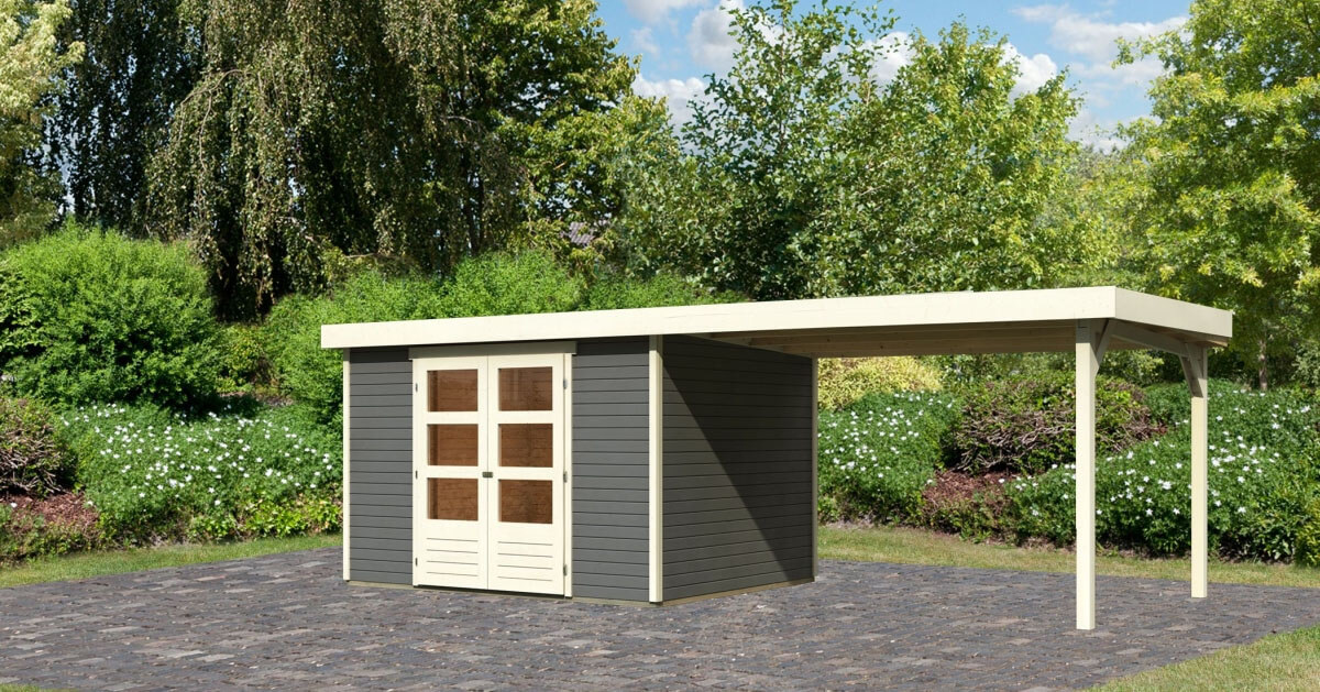 Karibu 19mm Gartenhaus Askola 5 mit 2,80m Anbau Terragrau