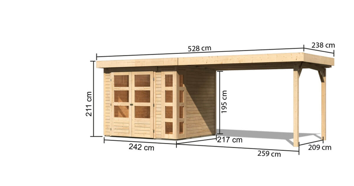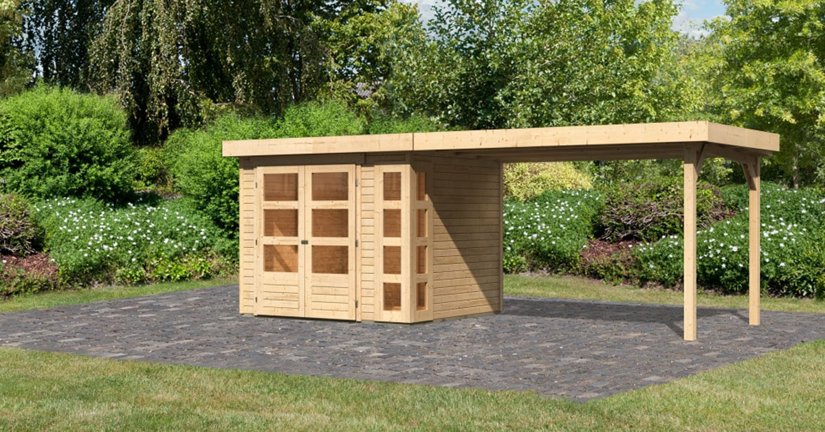 Karibu 19mm Gartenhaus Kerko 3 mit Anbau 2,80m