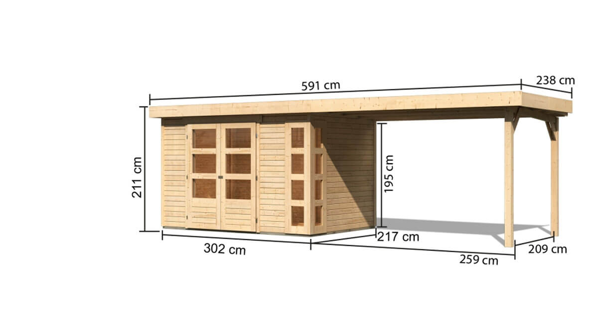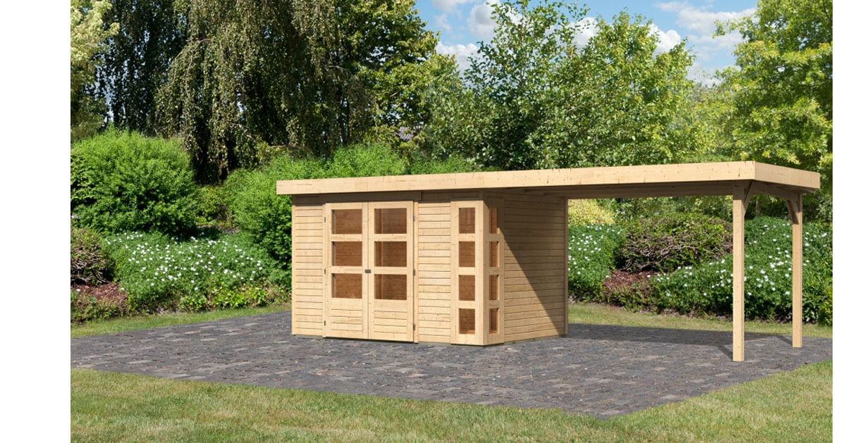 Karibu 19mm Gartenhaus Kerko 4 mit Anbau 2,80m