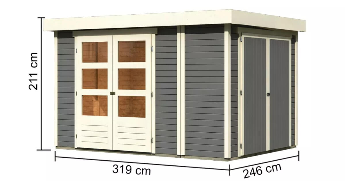 Karibu 19mm Gartenhaus Retola 4 in terragrau mit Anbauschrank