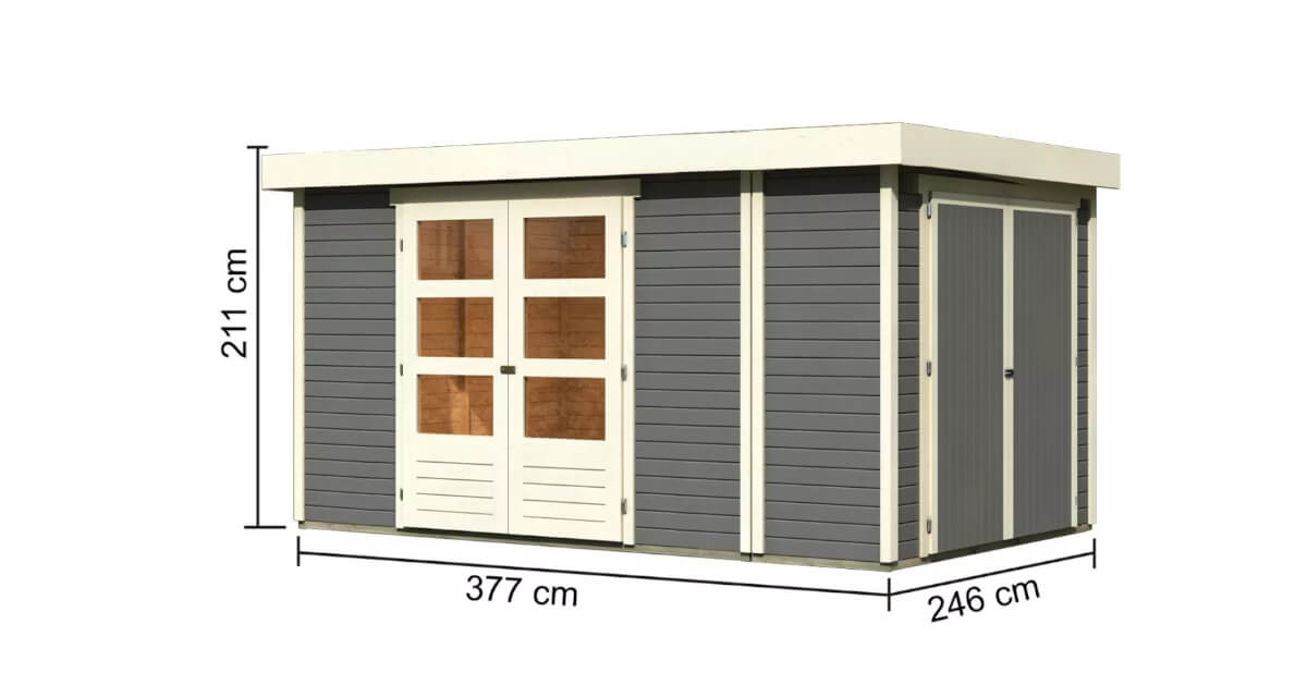 Karibu 19mm Gartenhaus Retola 6 in terragrau mit Anbauschrank