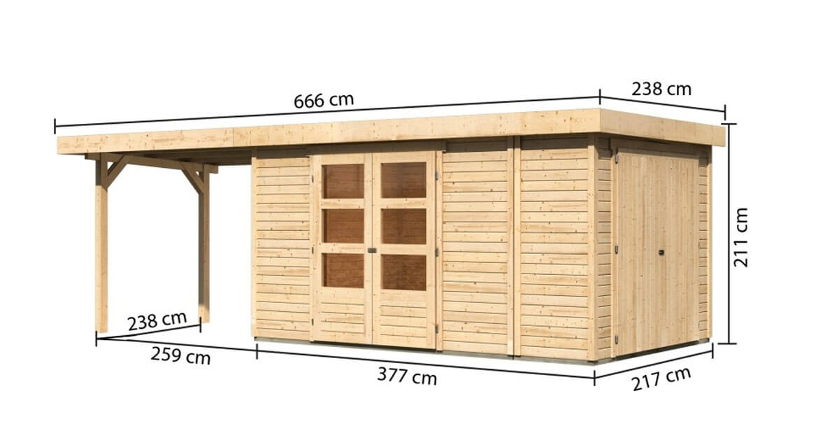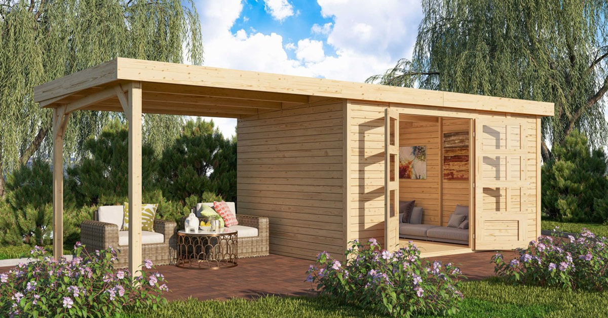 Karibu 19mm Gartenhaus Retola 6 mit Anbauschrank + 2,80m Anbau