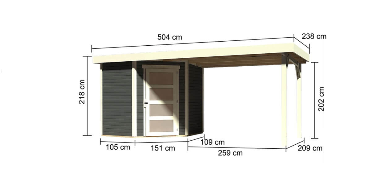 Karibu Gartenhaus 19mm Wandstärke Schwandorf 3 mit Anbau 2,80m Terragrau