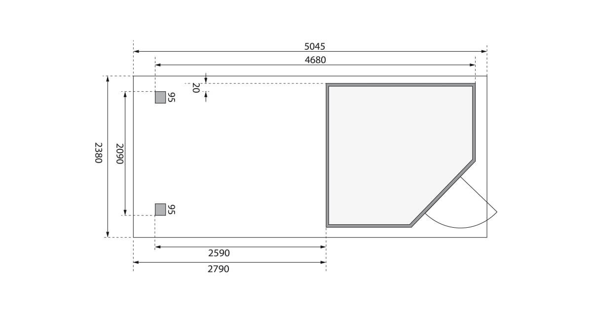 Nutzen Sie die Ecke Ihres Gartens sinnvoll mit dem Gartenhaus Schwandorf 3. Die moderne Ecktür mit vier Lichtausschnitten in Milchglasoptik sorgt für einen echten Hingucker in Ihrem Garten. Ob modern oder klassisch, das Gartenhaus Schwandorf passt bestimmt in jedes Ambiente. Wählen Sie die Frabe terragrau oder gestalten Sie das naturbelassene Gartenhaus nach Ihren eigenen Farbvorstellungen. Mit einem Außenmaß von (BxT) 213x217cm hat das Gartenhaus die optimale Größe für viele Gestaltungsmöglichkeiten. Nutzen Sie es zum Beispiel als Unterstand für Ihre Gartengeräte oder als kleines Gärtnerhaus. Durch ein Anbaudach kann auch der Platz vor dem Gartenhaus sinnvoll ausgenutzt werden. Das Schleppdach ist in der Breite 2,40m oder 2,80m erhältlich. Die optionale Seiten- und Rückwand schützt die Gegenstände unter dem Schleppdach zusätzlich vor Regen und Wind. So muss der Grillabend auch bei einem Wetterumschwung nicht unterbrochen werden. Von unten wird das Gartenhaus durch kesseldruckimprägnierte Bodenbalken vor Feuchtigkeit geschützt. Nutzen Sie den neu gewonnen Platz als gemütlichen Rückzugsort zur Entspannung oder vielleicht doch als Bastelwerkstatt mit überdachtem Außenbereich? Das Gartenhaus Schwandorf 3 richtet sich ganz nach Ihren Wünschen.