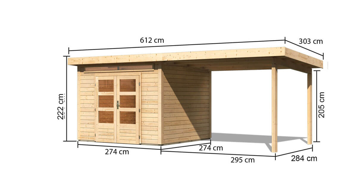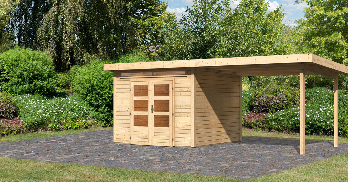 Karibu Gartenhaus 28mm Wandstärke Kandern 6 mit Anbau 3,20m