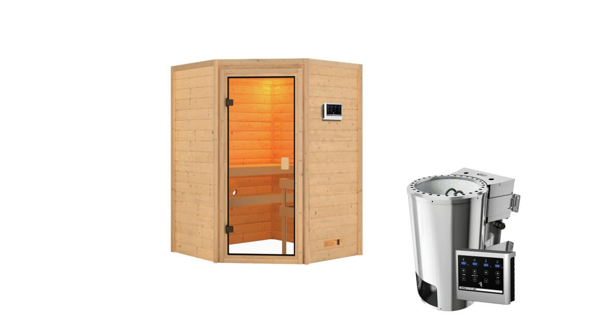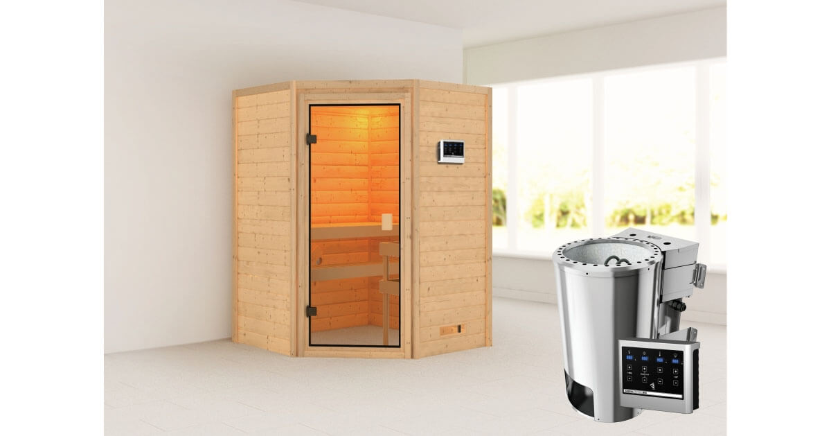 Karibu 38mm Massivholzsauna Antonia mit 3,6kW BIO Kombi-Ofen