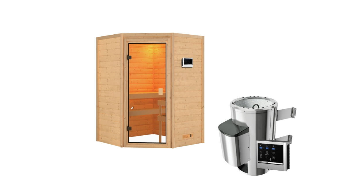 Karibu 38mm Massivholzsauna Antonia mit 3,6kW Saunaofen