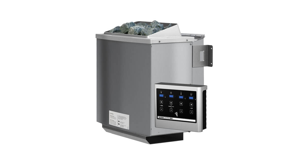 2 stabile Liegen aus Massivholz, 9kW BIO-Kombiofen mit externer Steuerung Easy, Ofenschutzgitter, Montageanleitung