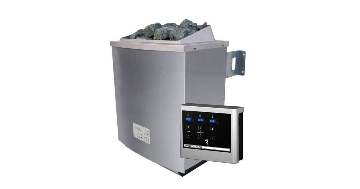 2 stabile Liegen aus Massivholz, 9kW Saunaofen mit externer Steuerung Easy, Ofenschutzgitter, Montageanleitung