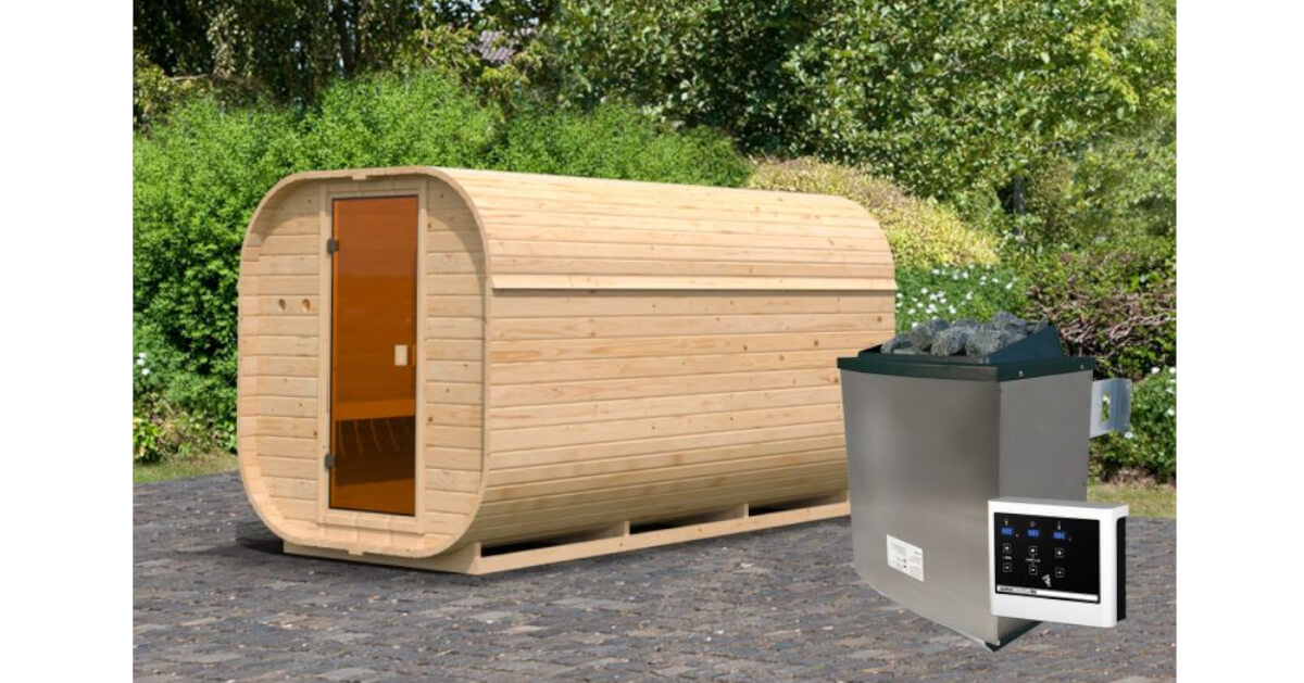 Karibu Fasssauna Quadro 3 mit 9 kW Ofen mit externer Steuerung