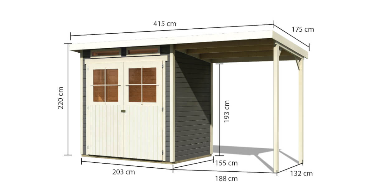 Karibu 19 mm Gerätehaus Glücksburg 2 mit Anbau