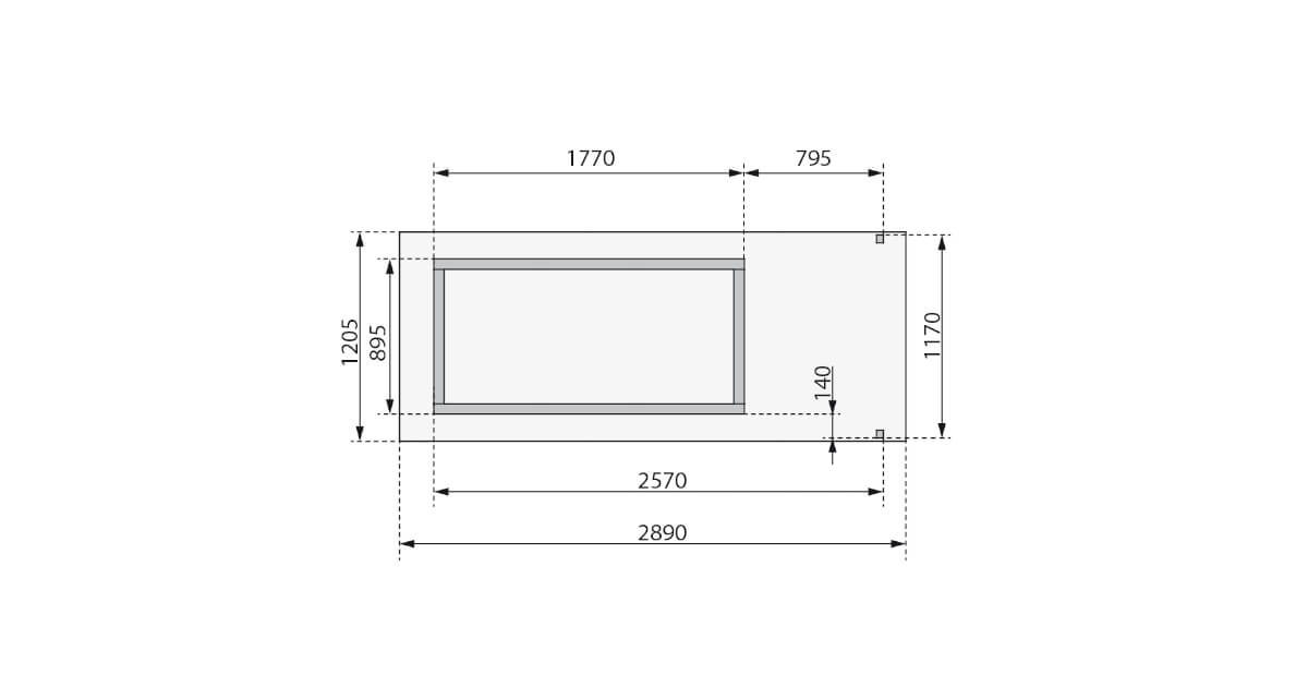 - Sockelmaß: ca. B 177 x T 89,5 cm