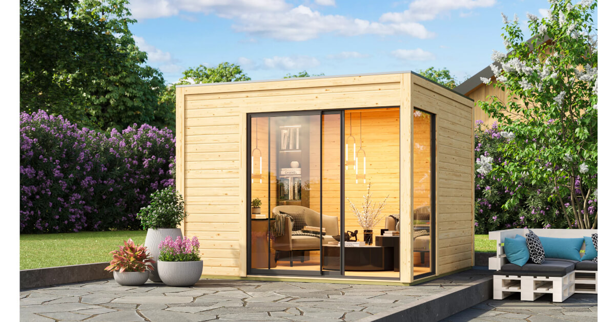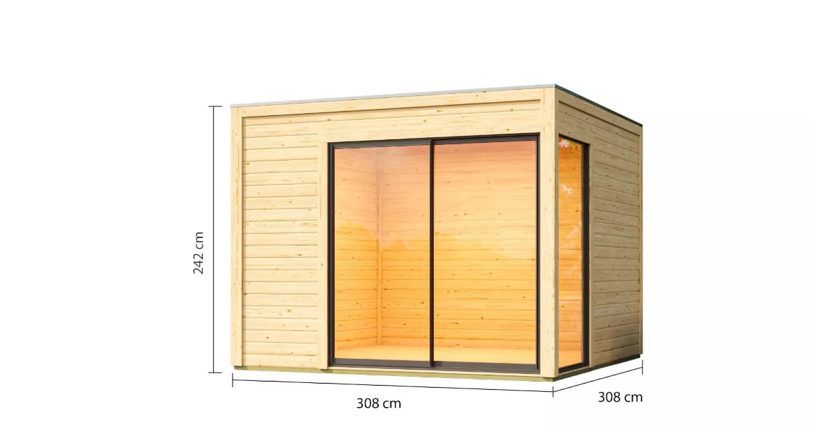 Das Gartenhaus Dice 1 mit modernem Flachdach bietet eine hochwertige und moderne Lösung, mit der Sie Ihren Garten in eine Oase der Ruhe und Entspannung verwandeln können. Aus massiven Holzwänden und einem Flachdach aus Massivholz mit einer Alu-Abschlussleiste gefertigt, ist es für viele Jahre Robustheit und Langlebigkeit ausgelegt.