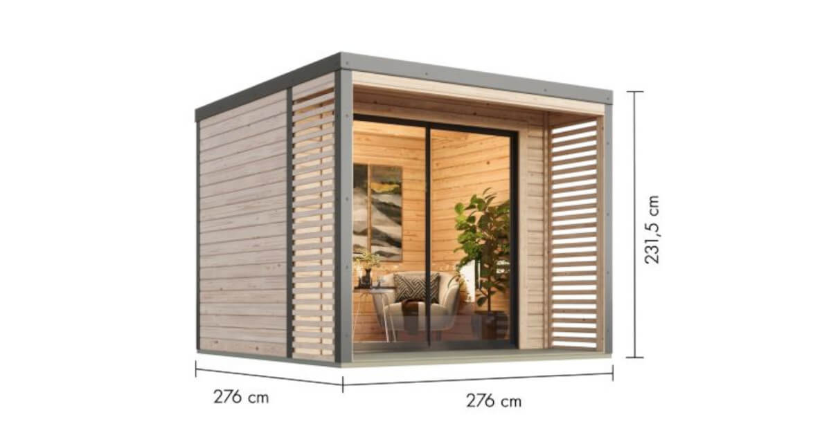 Mit Außenmaßen von 276 × 276 × 231,5 cm (B × T × H) fügt sich das Gartenhaus harmonisch in nahezu jeden Garten ein. Dank der durchdachten Konstruktion eignet es sich nicht nur als Rückzugsort oder Hobbyraum, sondern auch hervorragend als Homeoffice-Haus: hell, gut geschützt und mit genügend Platz für einen ergonomischen Arbeitsplatz. Ein Gartenhaus, das Technik, Komfort und vielseitige Nutzungsmöglichkeiten ideal vereint – und dank wartungsfreier Elemente lange Freude bereitet.