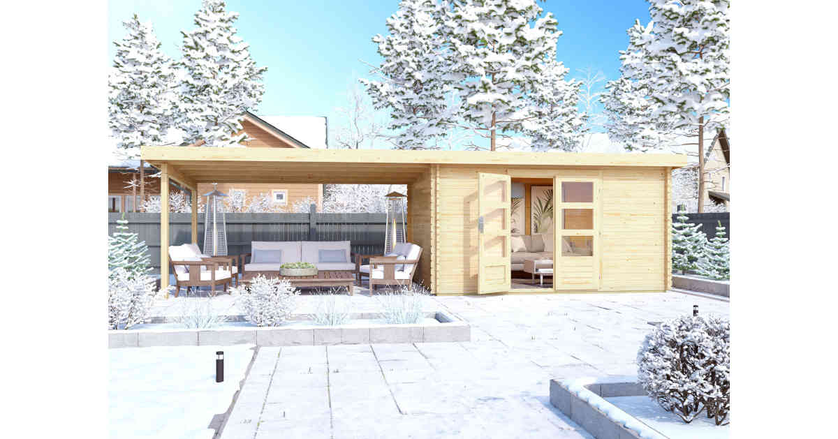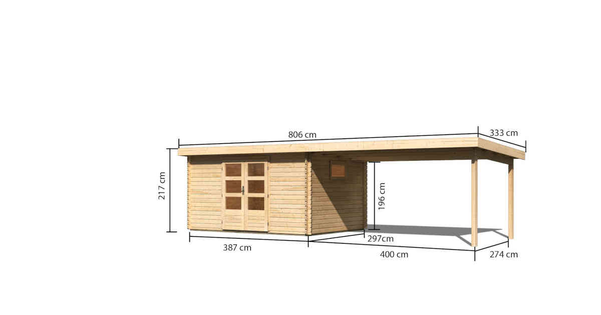 Karibu 38mm Blockbohlenhaus Trittau 5 mit 4,4m Anbau