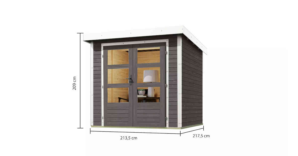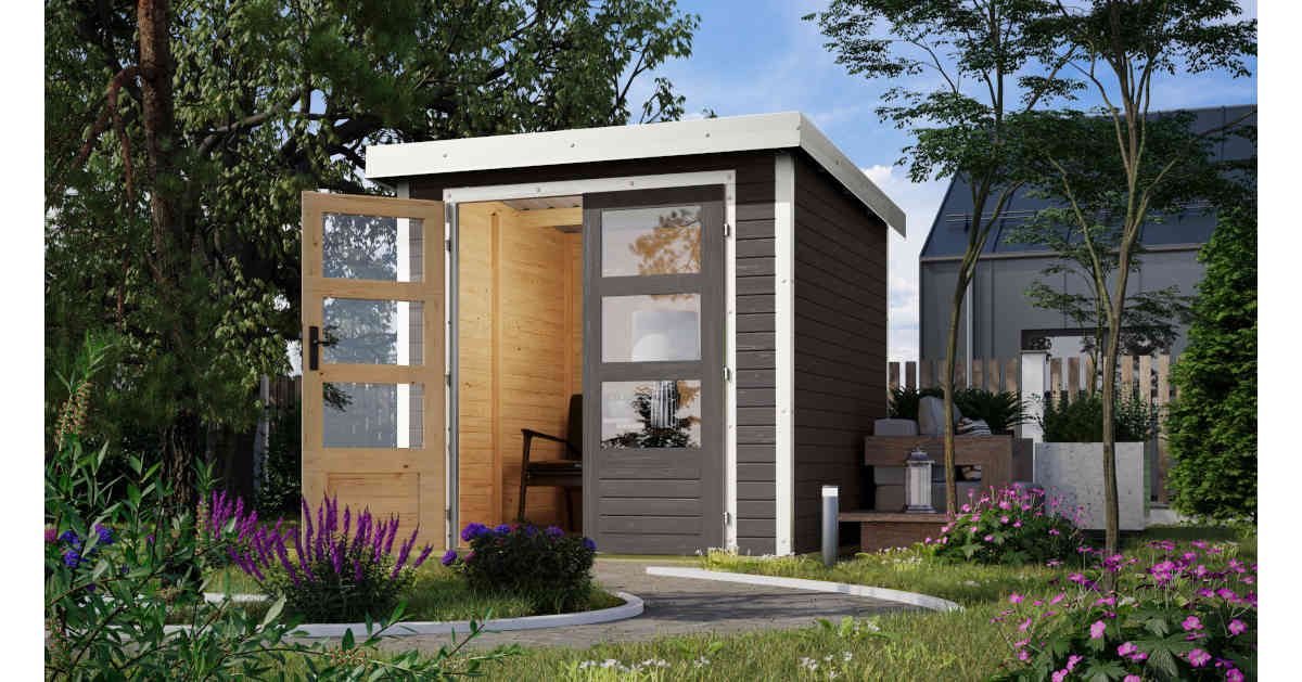 Erleben Sie die perfekte Vereinigung von Holz und Metall mit dem Hybrid-Gartenhaus von Karibu. Genießen Sie hochwertige Materialien, geringe Wartung, Witterungsbeständigkeit, Individualisierbarkeit, einfache Montage, Langlebigkeit und ein modernes Design.