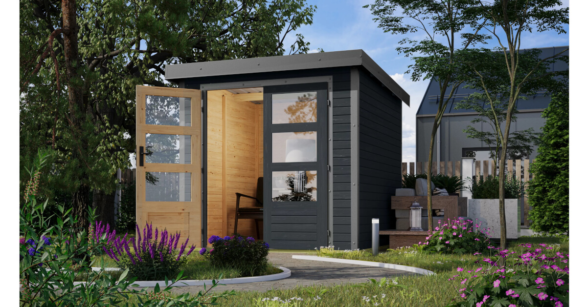 Erleben Sie die perfekte Vereinigung von Holz und Metall mit dem Hybrid-Gartenhaus von Karibu. Genießen Sie hochwertige Materialien, geringe Wartung, Witterungsbeständigkeit, Individualisierbarkeit, einfache Montage, Langlebigkeit und ein modernes Design.