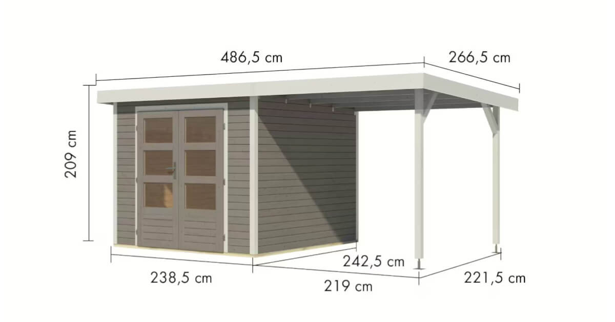 Mit dem optionalen Anbaudach erhalten Sie zusätzlichen Stauraum und erweiterte Nutzungsmöglichkeiten als Gartenlounge. Machen Sie es zu Ihrem persönlichen Rückzugsort.