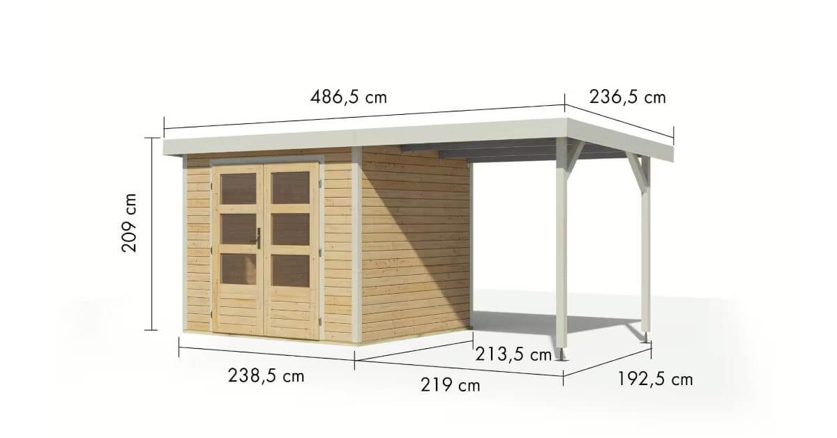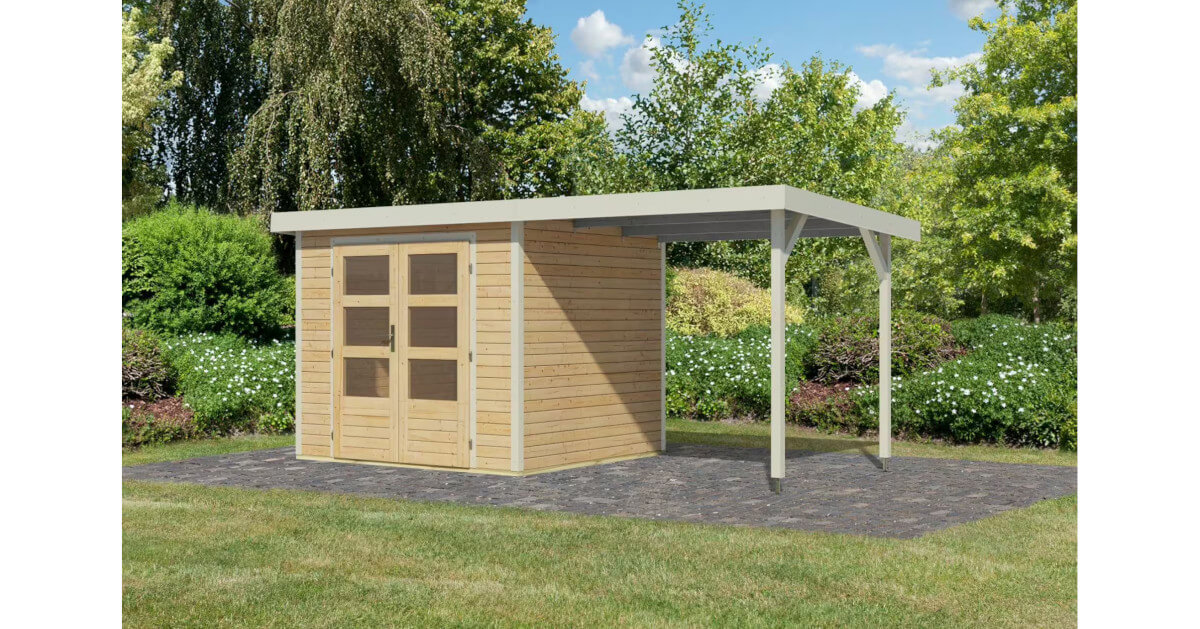 Mit dem optionalen Anbaudach erhalten Sie zusätzlichen Stauraum und erweiterte Nutzungsmöglichkeiten als Gartenlounge. Machen Sie es zu Ihrem persönlichen Rückzugsort.