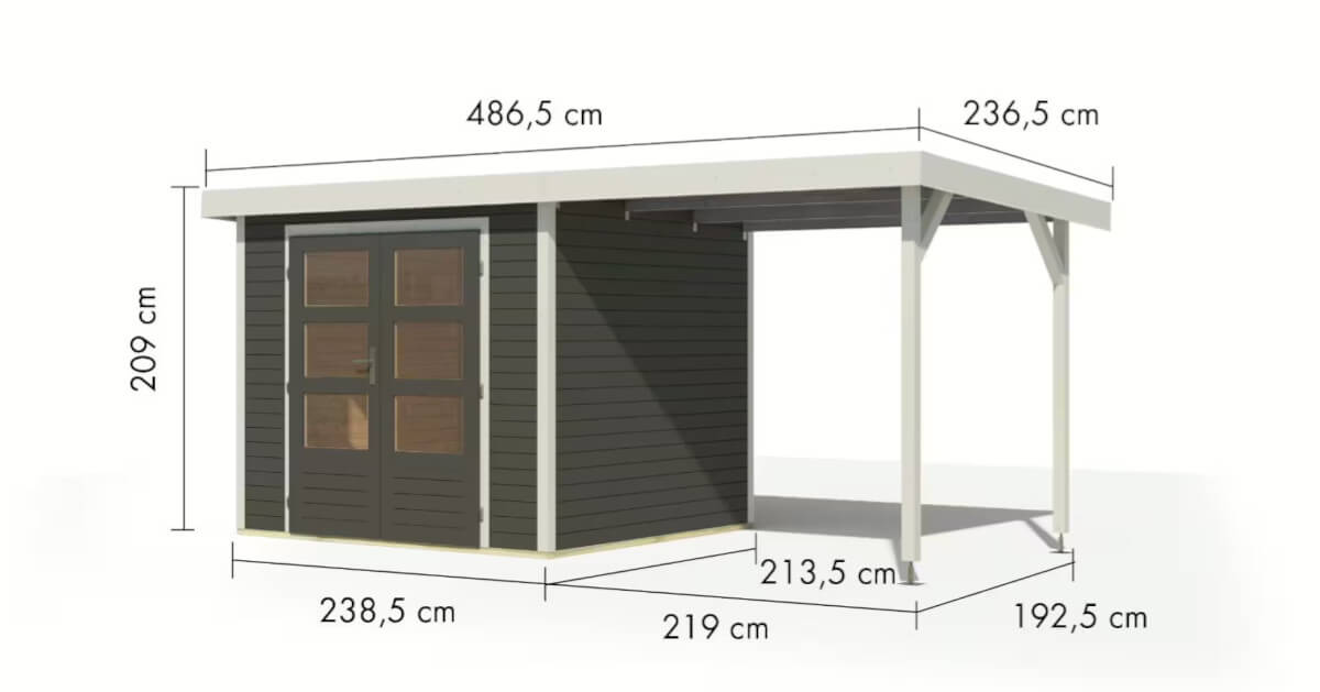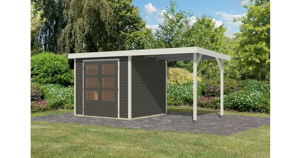 Mit dem optionalen Anbaudach erhalten Sie zusätzlichen Stauraum und erweiterte Nutzungsmöglichkeiten als Gartenlounge. Machen Sie es zu Ihrem persönlichen Rückzugsort.
