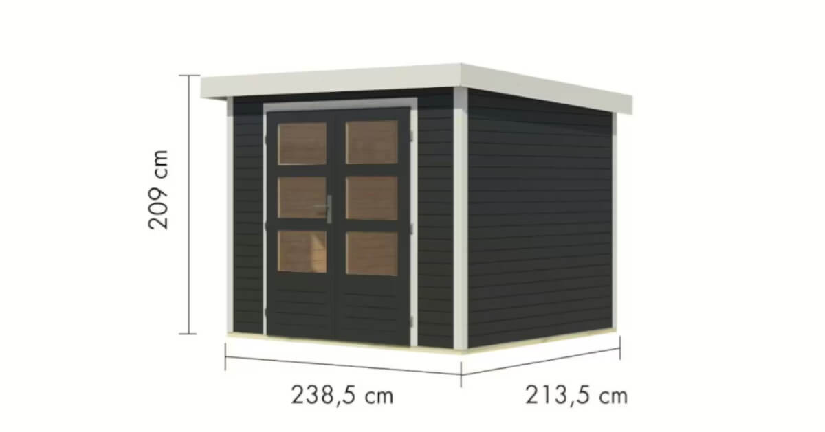 Hinweis: Alle unsere Hybridhäuser (inklusive diesem Produkt) werden in jeglicher Konfiguration mit einem anthrazitfarbenem Trapezblechdach geliefert!