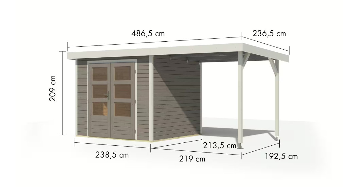 Mit dem optionalen Anbaudach erhalten Sie zusätzlichen Stauraum und erweiterte Nutzungsmöglichkeiten als Gartenlounge. Machen Sie es zu Ihrem persönlichen Rückzugsort.