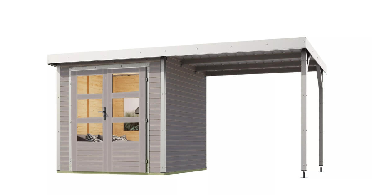 Karibu Hybrid-Gartenhaus Jupiter D mit Anbau wassergrau 209x213cm