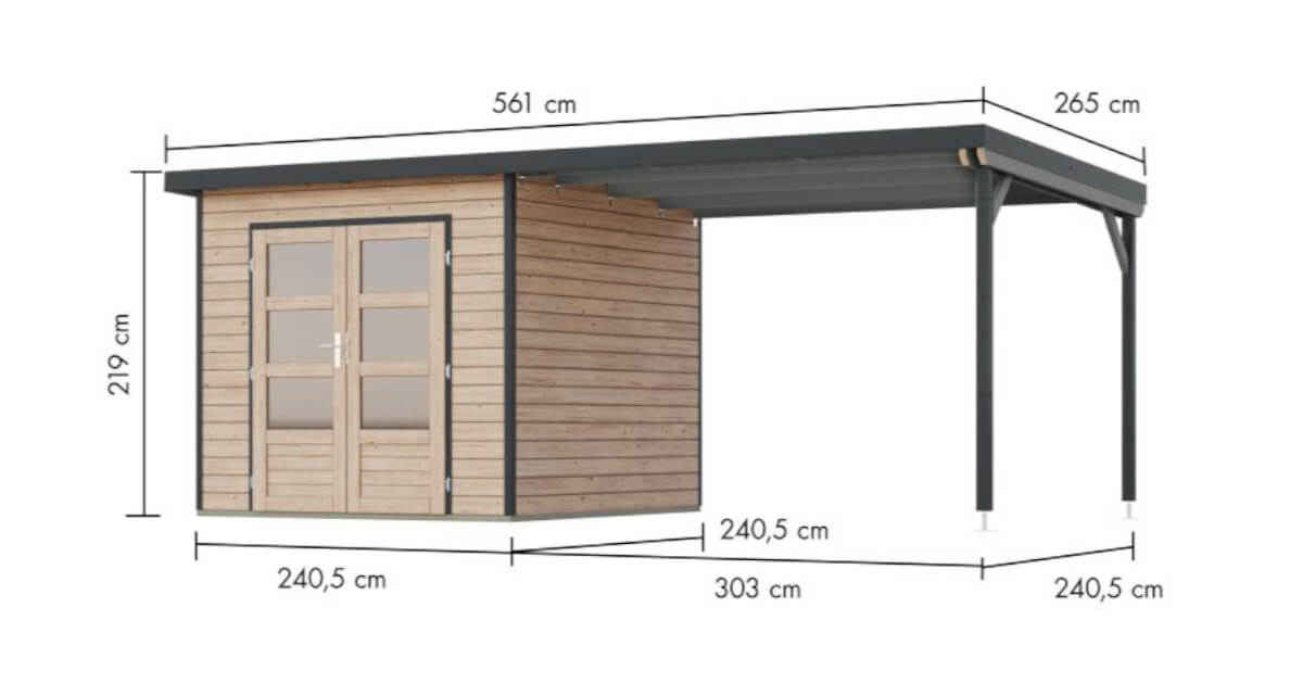 Karibu Hybrid Gartenhaus Pluto 3 A mit Anbau 3 m 544 x 240,5 cm naturbelassen