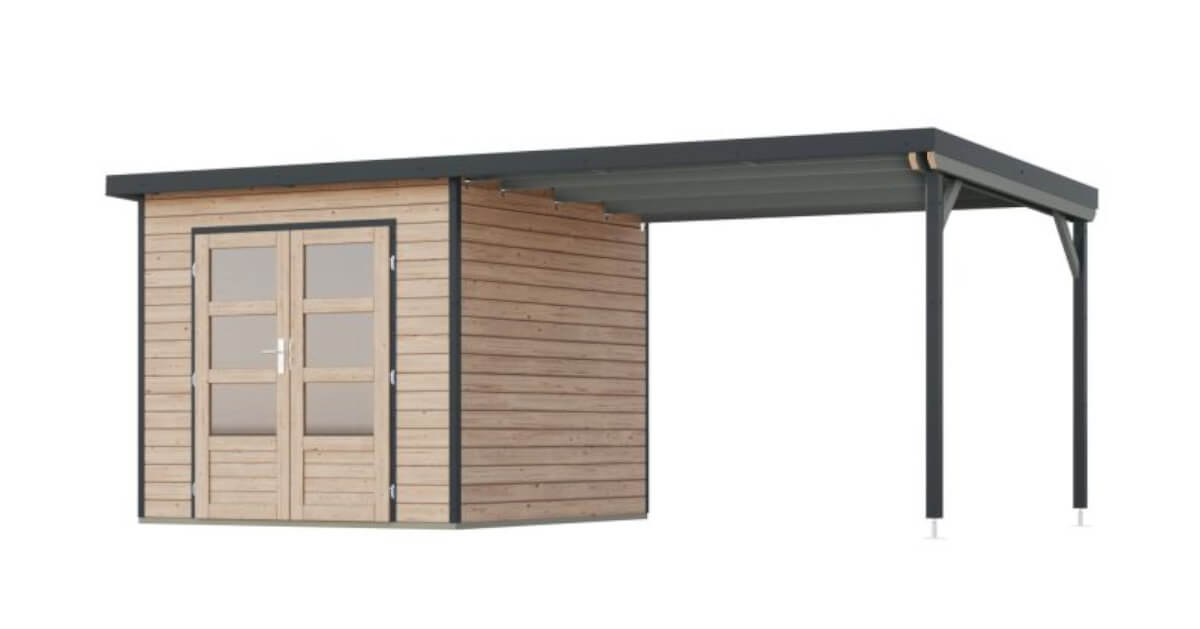 Mit dem optionalen Anbaudach erhalten Sie zusätzlichen Stauraum und erweiterte Nutzungsmöglichkeiten als Gartenlounge. Machen Sie es zu Ihrem persönlichen Rückzugsort.