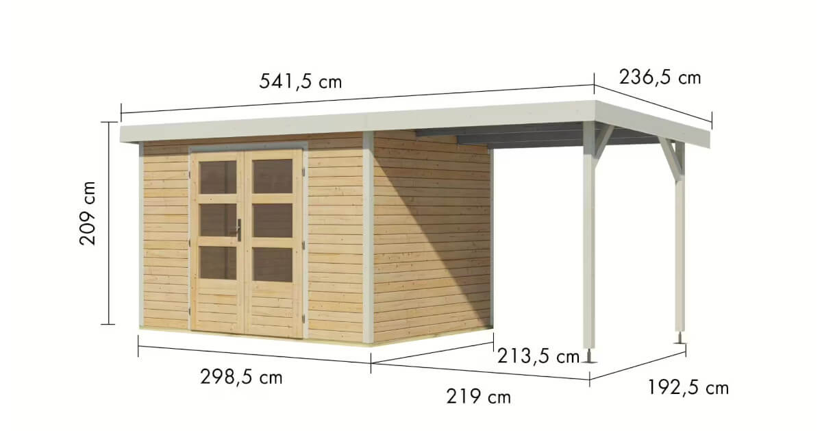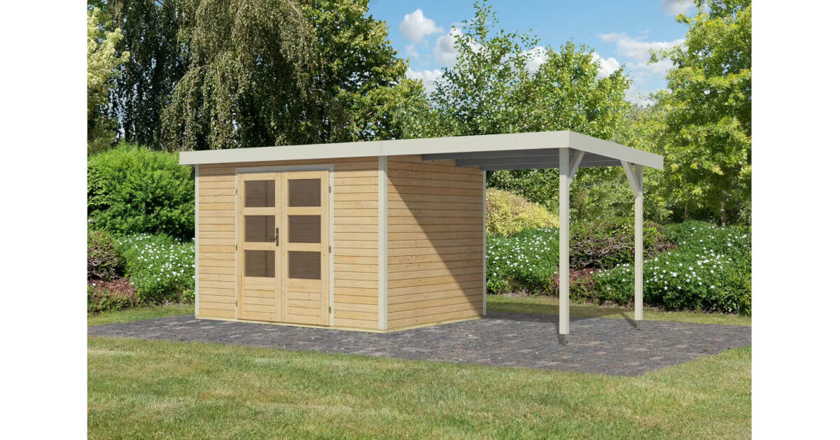 Mit dem optionalen Anbaudach erhalten Sie zusätzlichen Stauraum und erweiterte Nutzungsmöglichkeiten als Gartenlounge. Machen Sie es zu Ihrem persönlichen Rückzugsort.